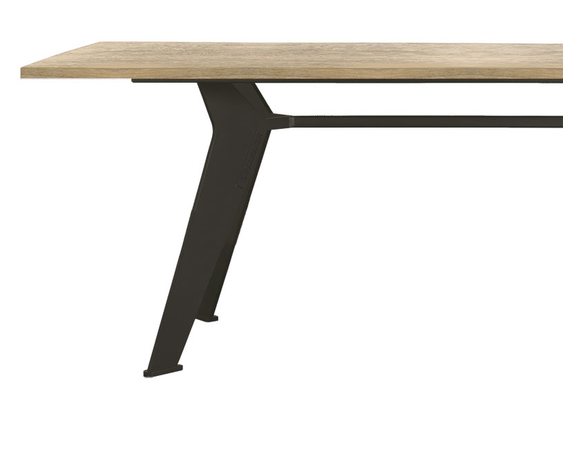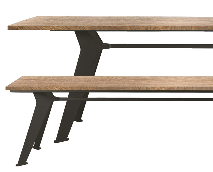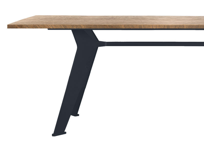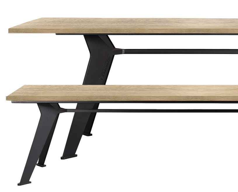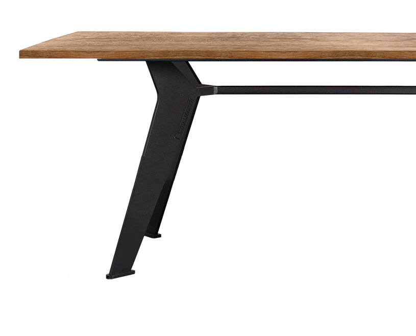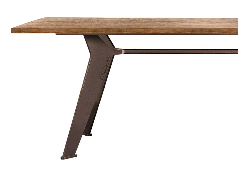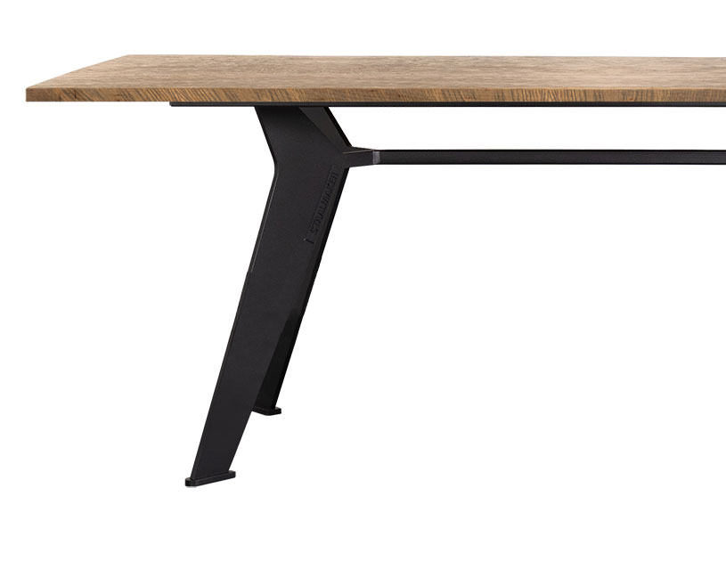 Mooi eikenhout of kwalitatief hoogwaardig marmoleum tafelblad, robuuste poten; deze elementen bepalen de unieke uitstraling van elke Staalmaker tafel.