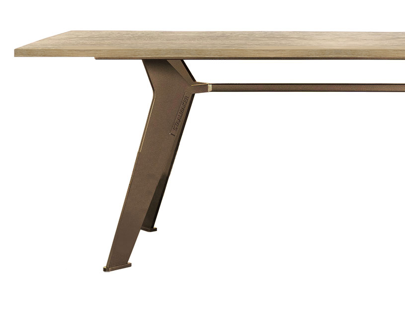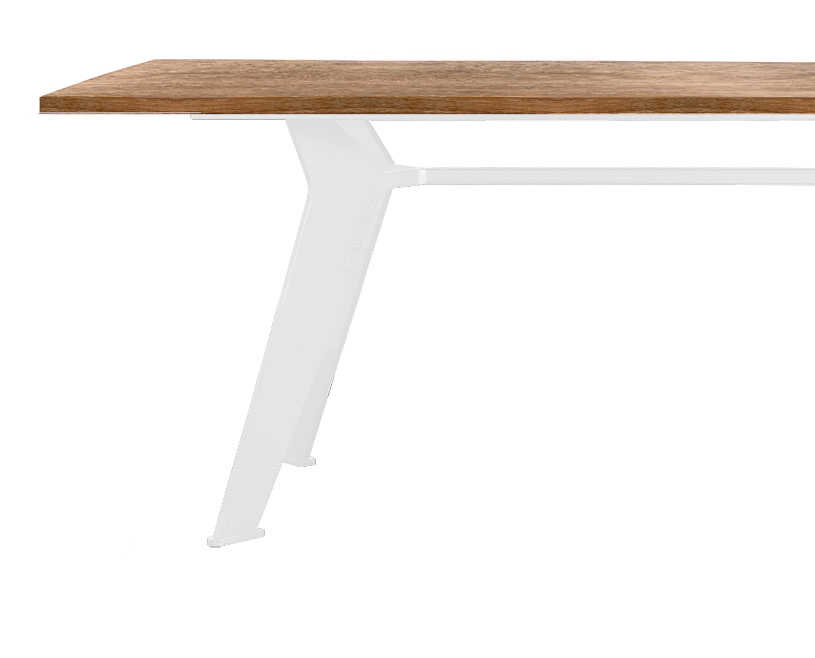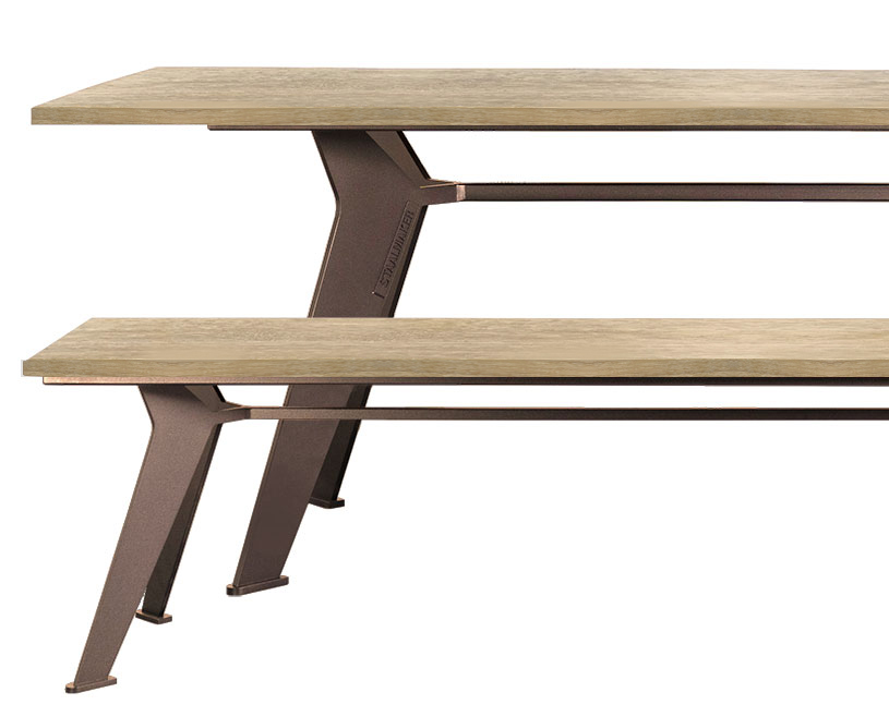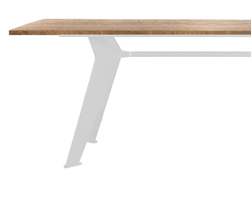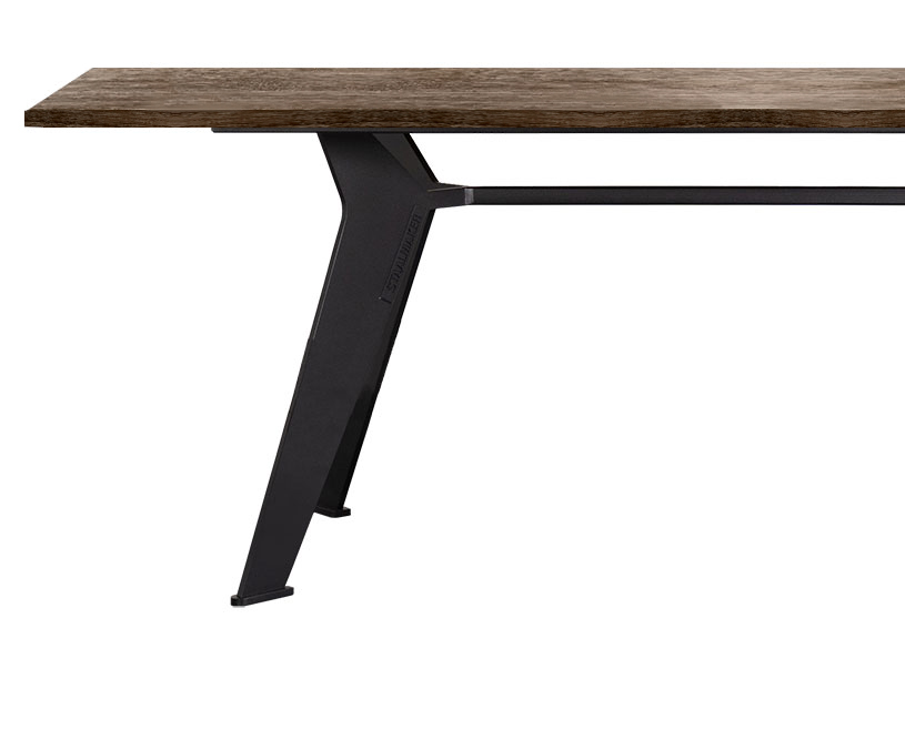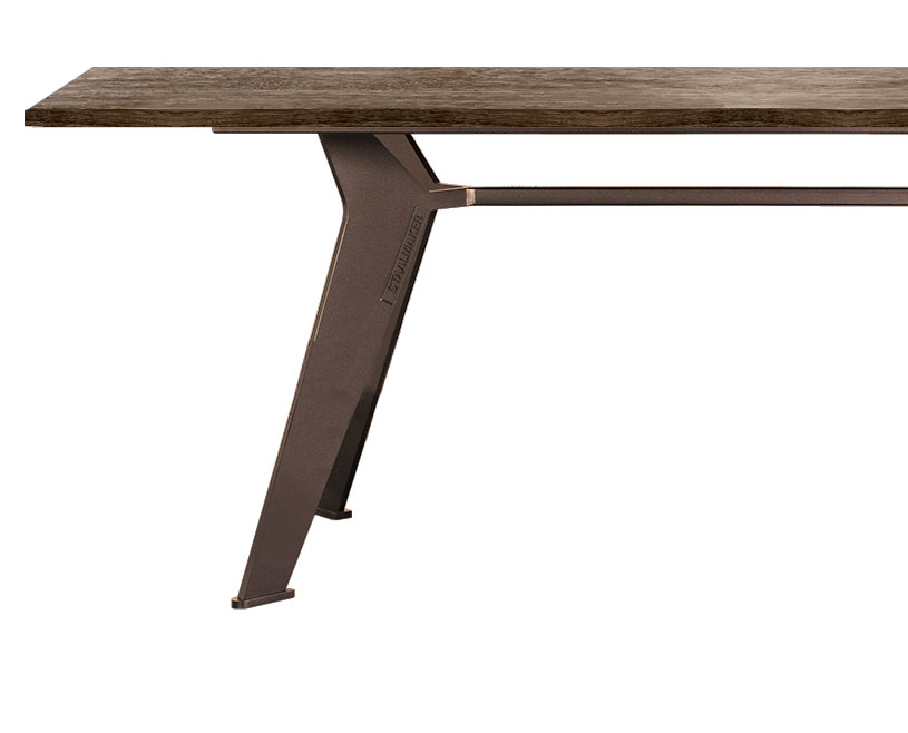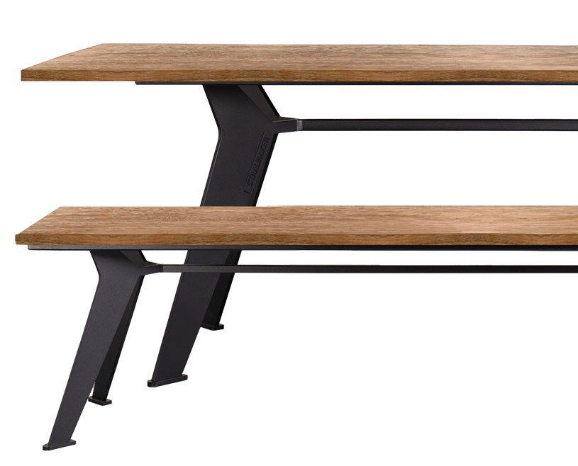 Mooi eikenhout of kwalitatief hoogwaardig marmoleum tafelblad, robuuste poten; deze elementen bepalen de unieke uitstraling van elke Staalmaker tafel.