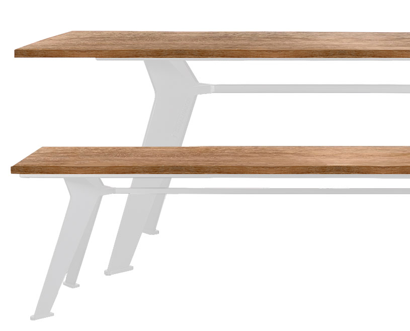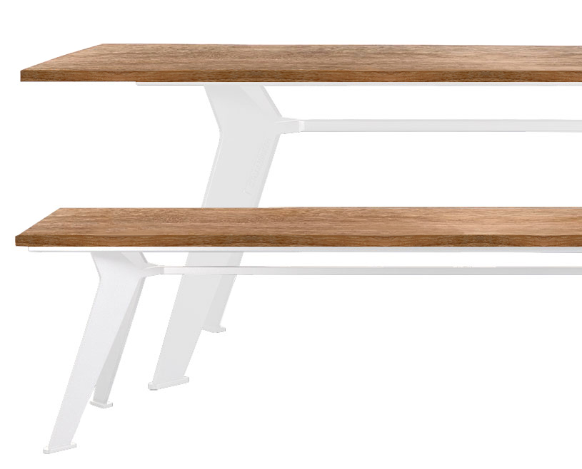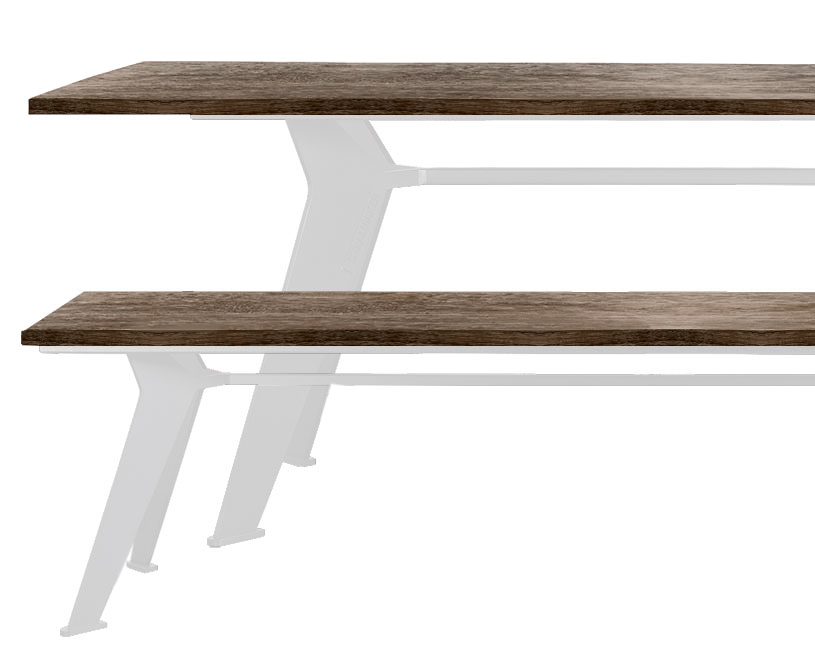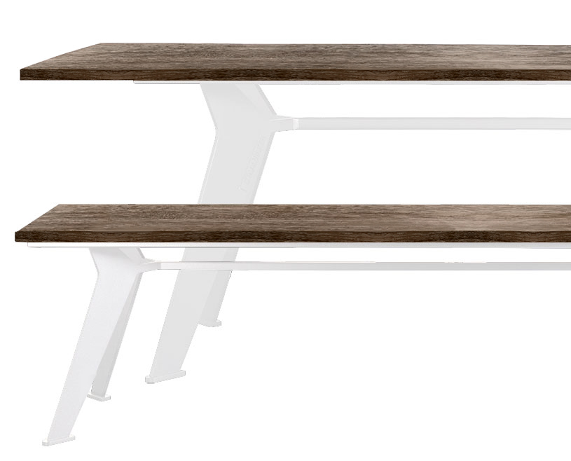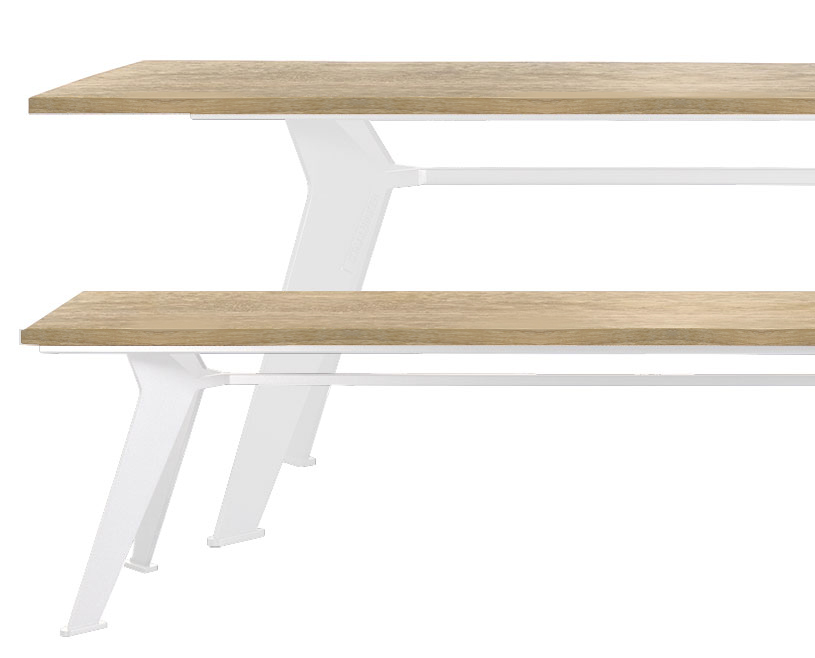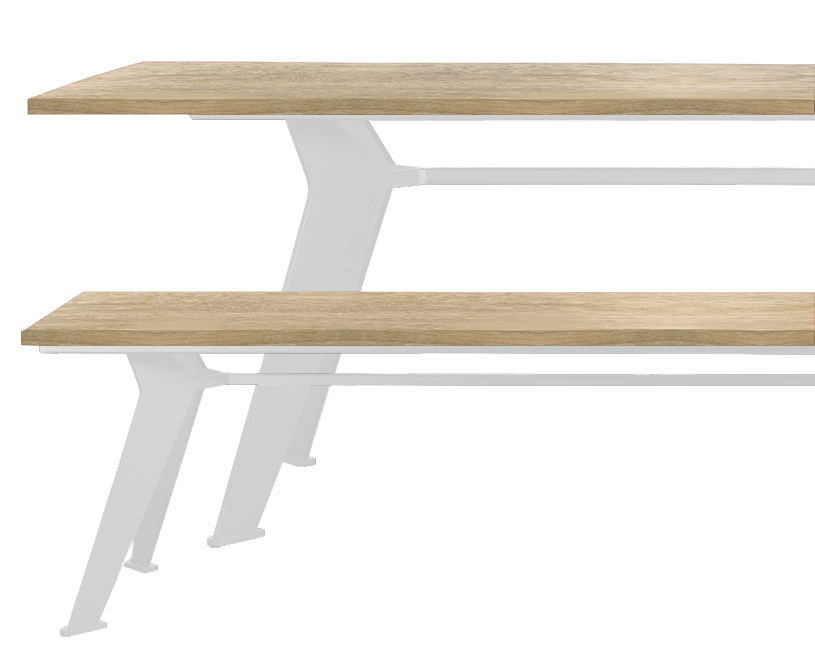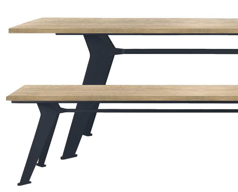 Stel eenvoudig je eigen tafel samen, je kan kiezen uit een eikenhouten- of marmoleum tafelblad.